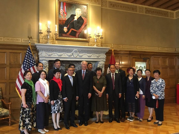 在州府工作人员带领团员参观州府大厦,韩州长接受随团中国日报记者采访之后,韩州长与代表团成员正式会面。