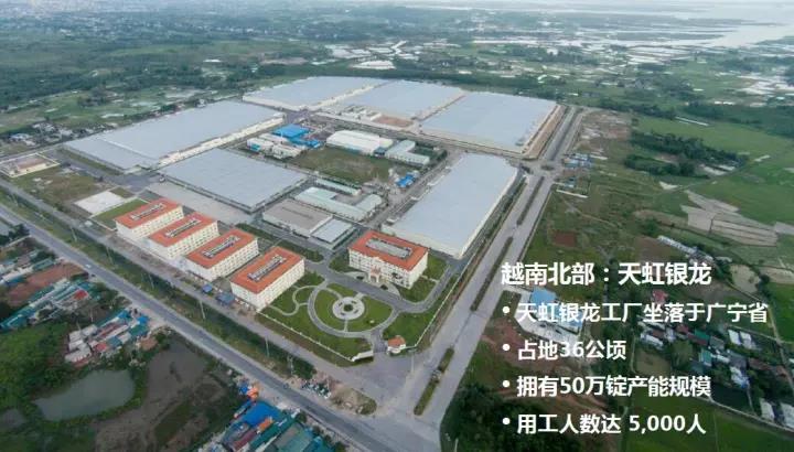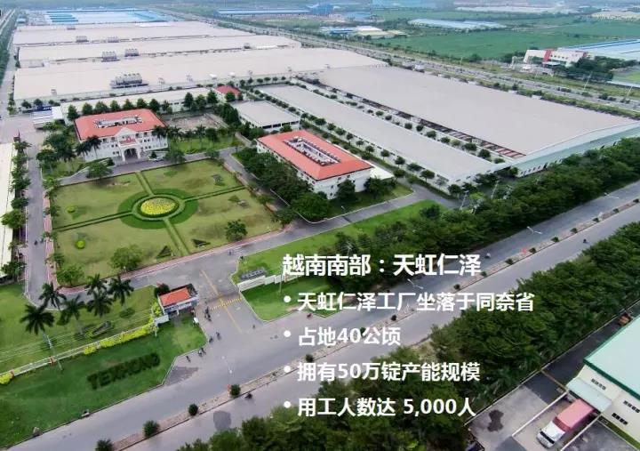 在全球经济低位徘徊和纺织行业转型升级背景下,天虹集团产业布局以国际化思维及全球化视野进行延伸发展,开始投资布局越南。截止目前,集团在越南拥有三大生产基地,纺纱生产规模达125万锭,占到全越南总生产规模(约700万锭)的17.9%,年生产纱线约30万吨。雇佣员工15000人,是越南名副其实的纱线龙头生产企业。