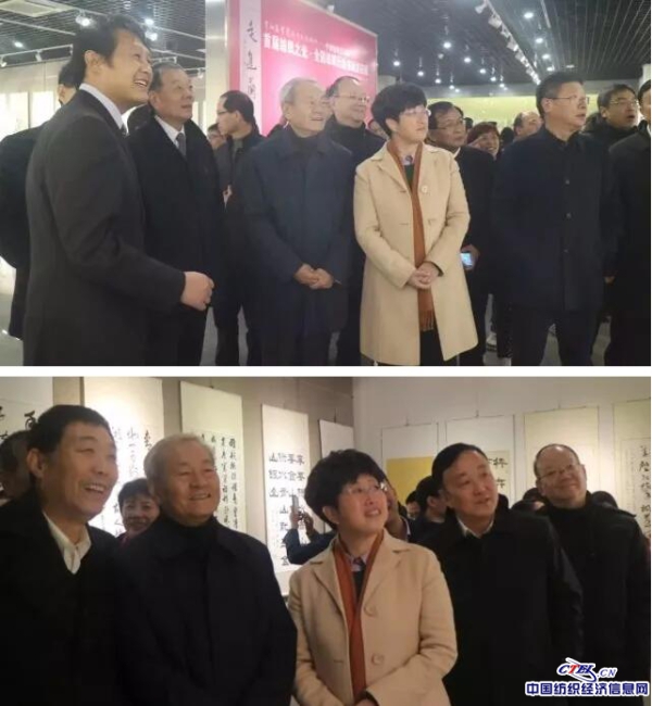 中国纺织工业联合会党委书记兼秘书长、纺织之光科技教育基金会理事长高勇,中国纺织工业联合会原会长杜钰洲,中国纺织工业联合会副会长、中国纺织职工思想政治工作研究会常务副会长杨纪朝,中国纺织工业联合会党委副书记陈伟康,中国纺织工业联合会副秘书长、纺织之光科技教育基金会常务副理事长叶志民,中国纺织工业联合会副秘书长、行业发展部主任李进才,中国纺织工业联合会办公室主任段红,中国纺织出版社社长郑伟良,中国纺织职工思想政治工作研究会副会长齐京生,中国纺织职工思想政治工作研究会秘书长姜国华,中国纺织工业联合会书画社社长、中国纺织职工思想政治工作研究会副秘书长郑国峰,北京恒源祥香山画院院长唐人皇,海宁家纺协会副会长、浙江胜宇布衣有限公司董事长王其生等领导嘉宾参加了开幕仪式。