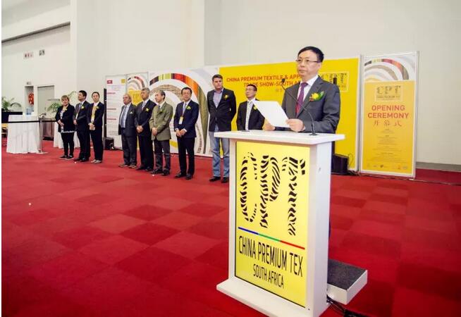 林云峰代表展会主办方发表了致辞,“中国纺织工业正在加快推动转型升级。中国纺织企业也正在积极、稳妥地“走出去”。希望南非中国纺织精品展的举办,可以让中国纺织工业与南非产业界和贸易界同行进一步加强沟通,扩大合作,为促进两国及中国与非洲纺织品服装业的合作共赢起到推动作用。”