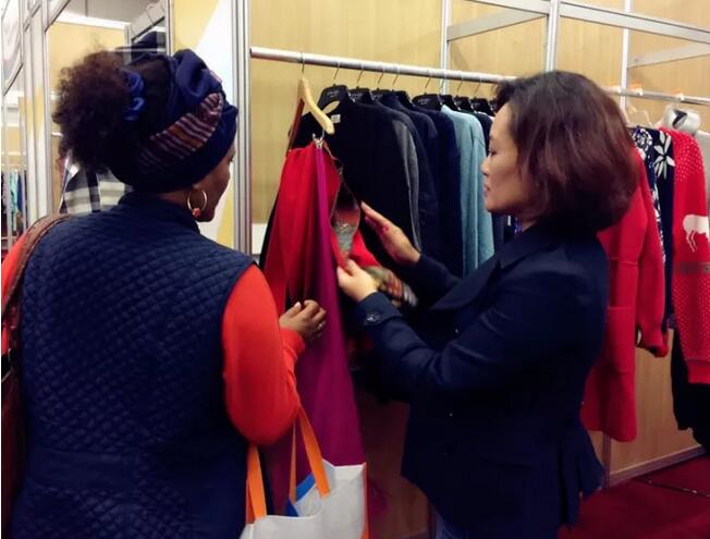 开展第一天上午,来展会现场参观的客商就络绎不绝。浙江朗莎迪尔的设计总监claudio高兴的说,“今天刚开展我们就接到了一笔2000件衣服、1000条裤子的订单。因为我们的产品起订量可以个性化定制,定价也十分满足当地的消费水平。我们对后几天的参展效果抱有十足的信心。”